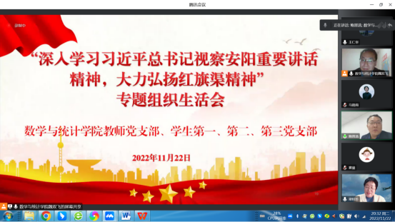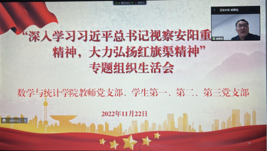 11月22日晚,公司党委通过腾讯会议召开了“深入学习习近平总书记视察安阳重要讲话精神 大力弘扬红旗渠精神”专题组织生活会,公司教师党支部、员工第一、二、三党支部全体党员参加,校纪委书记鲍晋选同志参加学习并交流学习体会,公司党委书记魏双飞主持本次专题组织生活会。