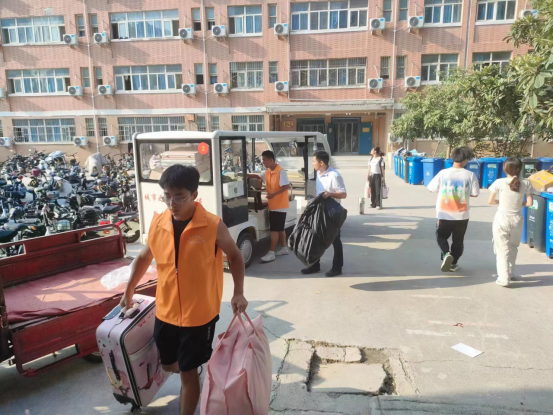 搬迁过程中,公司领导和辅导员老师们亲自上阵,全程指挥,有效疏导交通,热情服务搬运工作。员工志愿服务队协助E05同学们将提前打包好的行李搬运下楼,有序装车、卸车,再协助同学们将行李搬运进新宿舍。烈日炎炎无法阻挡志愿者们前进的脚步,沉重的行李也压不倒志愿者们为大家服务的热情。经过大家的共同努力、团结协作,4日下午六点前顺利完成此次宿舍搬迁工作。