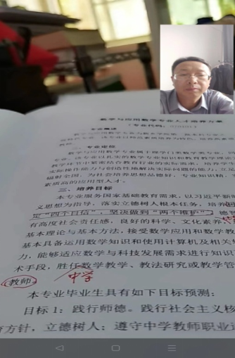 王裕清教授从人才培养目标、培养要求、毕业生规格、专业核心课程、毕业要求、课程体系对毕业要求的支撑关系矩阵和教学进程计划表七个方面,对“2020版数学与应用数学专业人才培养方案”提出了自己独到的见解和建议。他指出,人才培养方案是公司贯彻党的教育方针和实现人才培养目标的顶层设计,是公司组织和管理教学过程的主要依据,更是师范专业认证的关键所在,必须认真审视,确保其系统性、科学性和导向性。针对“如何凝练人才培养特色”这一问题,王裕清进行了详细解答。他从应用型人才培养和数字时代的要求出发,提出了更新课程设置,强化数学与应用数学专业员工人文和科学素养,提升应用能力,打造具备数学,物理和科学素养课程的高素质一专多能型中学教师的新理念。