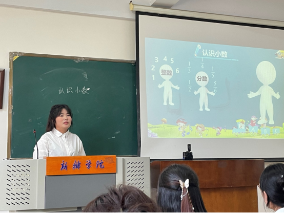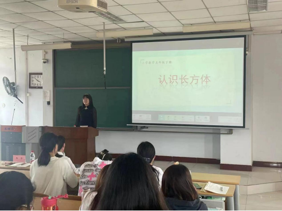 为了检验同学们见习成果,beats365于5月17日下午在A03-209教室举行了“2022级小学数学教育专业教育见习成果展示”活动,从70名同学中随机抽取陈子文、邓满枝等5名同学进行微型课展示,由皮磊、于云霞、郭建霞三位老师担任评委。5名同学以精彩的课题导入、缜密的课堂设计、优美的板书、大方的仪态、清晰的讲解,向评委老师和同学们展示了数学教学的魅力,赢得现场观众的阵阵掌声。皮磊老师对这5位同学的表现给予了肯定,并对微型课展示中的教学内容、教学方法、课堂互动、逻辑语言、板书设计等方面进行点评,并提出了指导性建议,使同学们受益匪浅。