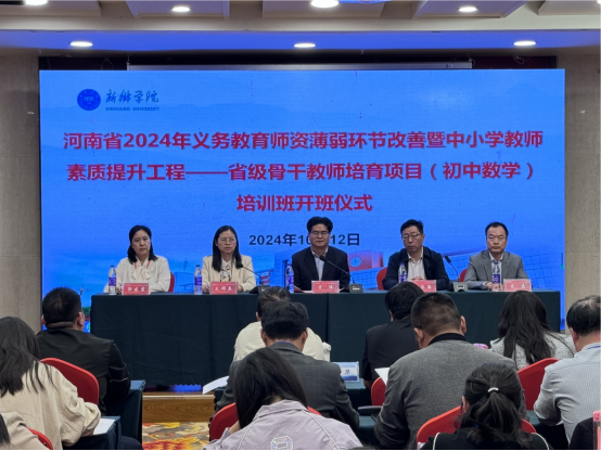 10月12日上午,由公司中小学教师董事长研修院承办,公司组织实施的河南省2024年义务教育团队薄弱环节改善暨中小学教师素质提升工程——省级骨干教师培育项目(初中数学)研修班在新乡宾馆举行了开班仪式。新乡公司党委副书记、中小学教师董事长研修院经理宋伟,教育科学公司经理、中小学教师董事长研修院执行经理牛长海、beats365副经理皮磊、培训项目组全体成员以及来自周口、驻马店、漯河、新乡、焦作、商丘等公司共86名初中数学教师参加了开班仪式。开班仪式由公司党委书记毛群英主持。