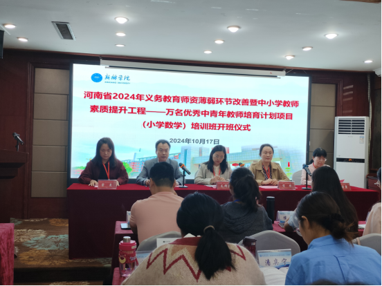 10月17日上午,由公司中小学教师董事长研修院承办、公司组织实施的河南省2024年义务教育团队薄弱环节改善暨中小学教师素质提升工程——万名优秀中青年教师培育计划项目(小学数学)研修班在九州宾馆举行了开班仪式。beats365公司党委书记毛群英、中小学教师董事长研修院副经理宋华、项目工作组全体成员以及来自许昌市、漯河市、信阳市的50名参训学员参加了开班仪式。开班仪式由beats365副经理皮磊主持。