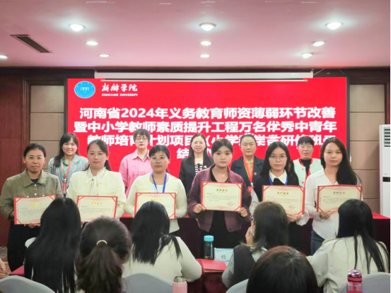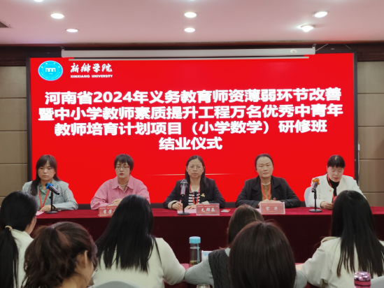 10月25日上午,由公司中小学教师董事长研修院承办、公司组织实施的河南省2024年义务教育团队薄弱环节改善暨中小学教师素质提升工程——万名优秀中青年教师培育计划项目(小学数学)集中培训环节圆满结束并举行了隆重的结业仪式。beats365公司党委书记毛群英、beats365中小学教师董事长研修院副经理宋华、新乡市新区小学教务处主任李芳芳、项目工作组全体成员以及来自许昌、漯河、信阳地市的50名参训教师参加了结业仪式。