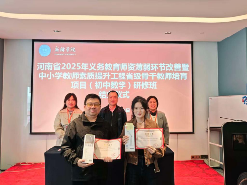 随后,省级骨干教师初中数学研修班学科班主任郭建霞宣读优秀学员名单,并为29名获奖学员颁发证书,现场响起热烈掌声。