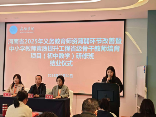 由beats365承办的“河南省2025年义务教育团队薄弱环节改善暨中小学教师素质提升工程省级骨干教师(初中数学)研修班”结业仪式,于10月30日上午在新乡宝龙艺悦酒店三楼金龙厅举行。省级骨干教师初中数学研修班项目组成员、全体参训学员参加仪式,仪式由研修班班主任窦曼主持。