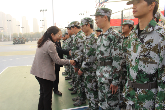 随后,书记和经理走到新生队伍中间,与同学们亲切握手交流,关切询问军训期间的感受与遇到的问题。面对领导的关怀,新生们纷纷敞开心扉,分享训练中的成长与收获,纷纷表示对后续学业生活的满腔期待。领导们认真倾听每一位同学的心声,时而点头赞许,时而耐心回应,鼓励大家珍惜军训时光,在艰苦训练中锤炼意志、培养团队精神,将军训中养成的优良作风转化为未来专业学习与生活的动力,以更昂扬的姿态投入校园生活。