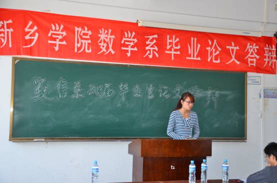 5月11日早上八点30分,数学与信息科学系2013届毕业生毕业论文答辩如期举行。参加本次答辩的同学共112人,分别是2009级数学与应用数学专业84人,2011级数学与应用数学专升本28人。根据我系实际情况,答辩分为10个小组,分别由崔光云书记、梁桂珍副主任、赵国喜副主任等担任答辩组长,答辩地点设在A03-0303,A03-0304,A01-0204等10个教室。答辩期间,副经理吴中教授、教务处处长刘莉莉教授、教务处副处长郑宝霞教授、数信系王守印主任等领导亲临我系毕业生毕业论文答辩现场,并听取了员工答辩情况。