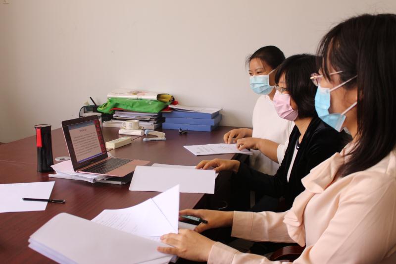 本次毕业作品答辩采用了远程视频答辩的方式,网络平台主要使用腾讯会议和钉钉。为保证远程答辩顺利进行,数学与信息科学公司成立了9个答辩小组,各小组均在答辩前对硬件和软件进行了多次调试,并与员工端进行答辩演练。