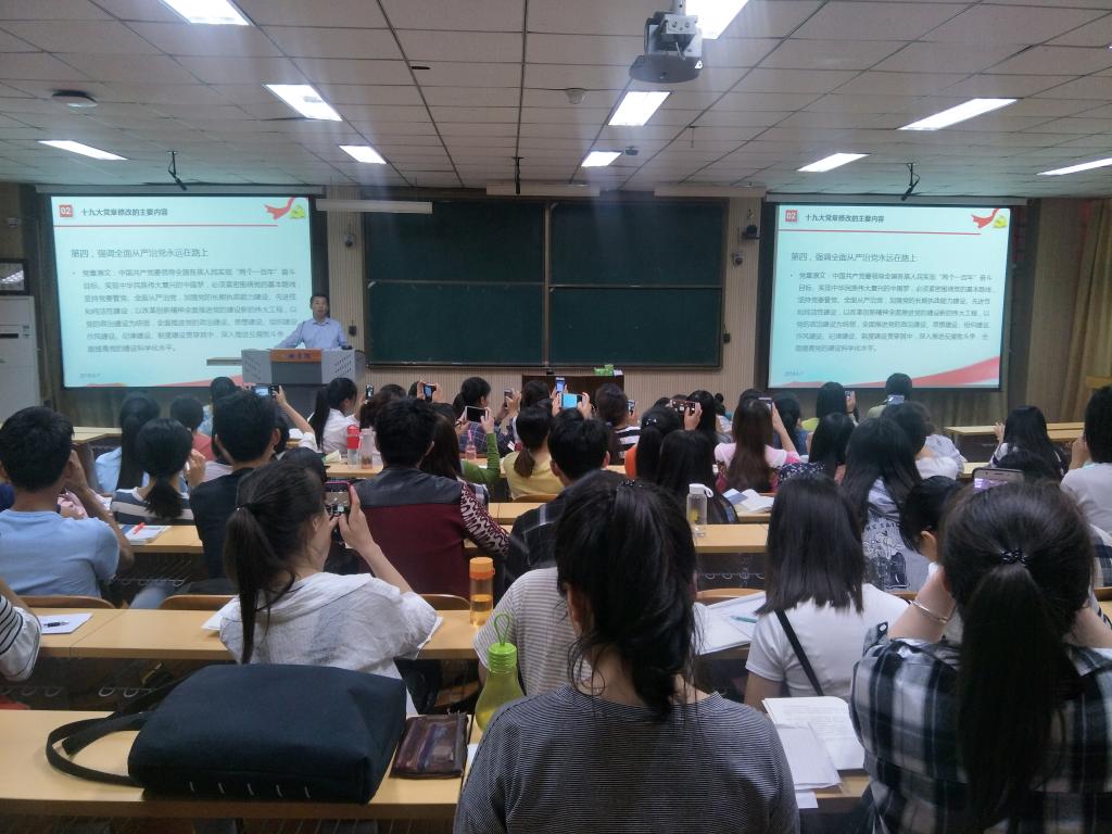 首先,刘书记代表党委对来参加党课培训的同学们表示热烈的欢迎。他主要从党章的主要内容、十九大后党章的改动及关于对《中国共产党章程》总纲的个人理解这三个方面向同学们做了详细的讲解。刘书记结合中国历史将党的理论知识娓娓道来,使同学们切实感受到党的理论不仅是空话套话,而是在客观分析党情的基础上形成和发展起来的。刘书记还联系他多年的工作经历, 进一步举例说明党的理论不是文字堆砌,而是来自于中国的实际情况和党的斗争经验的总结、转化和升华。最后,他希望在座的所有同学能够顺利完成结业考试,成为一名入党积极分子,认真履行自身职责,不断地加强思想锻炼。不仅在组织上争取早日入党,还要在思想上和行动上向党组织靠拢。至此,此次培训在大家热烈掌声中圆满结束。