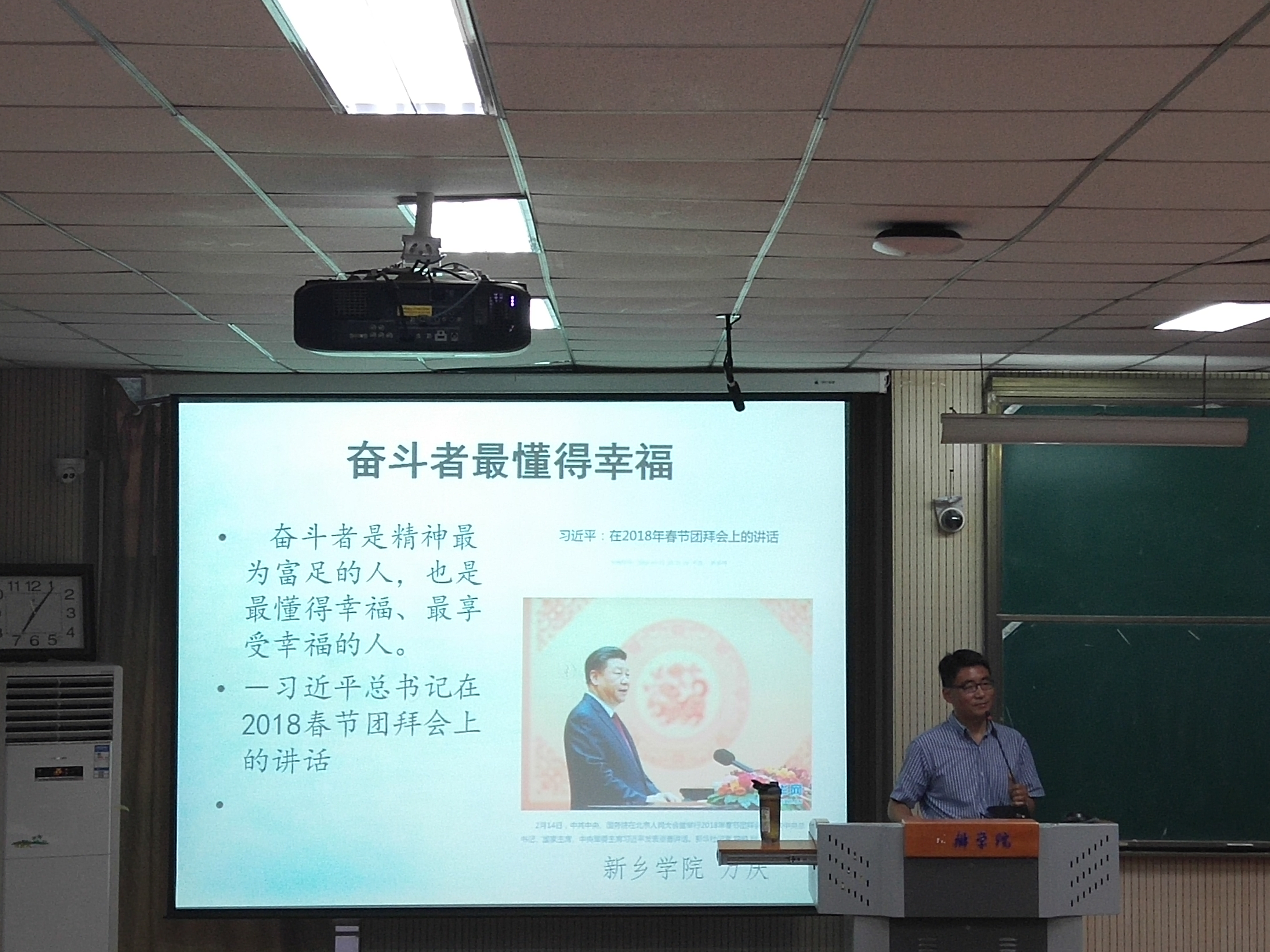 万庆老师从中国历史入手向同学们介绍党的历史上的三大篇章和三大历史任务,并结合马克思哲学史讲述了幸福观的形成。他认为党的历史是为中国人民的利益而不懈奋斗的历史,是探索和开辟中国革命和中国特色社会主义道路的历史,是不断加强自身建设的历史,也是带领中国人民取得革命建设、改革和发展伟大成就的历史。所以,同学们应该倍加尊重历史、珍惜成就、正视问题,积极应对新的挑战,对已经形成的中国特色社会主义道路、中国特色社会主义理论体系,还有中国特色社会主义制度要更加自信,为实现中华民族在此世纪的伟大复兴而继续努力奋斗。