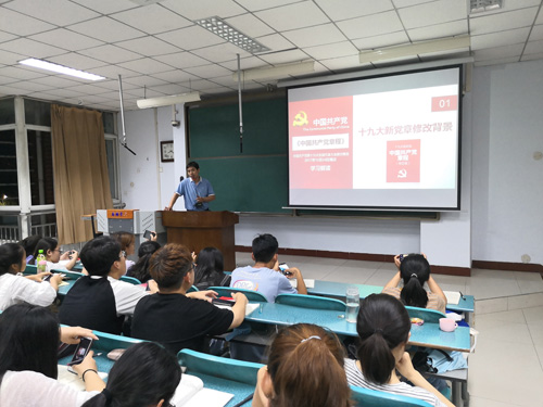 首先,王仁举老师对党章进行简单介绍,他表示,党章是政党内部最基本和最高的政治行为规范,是完备的党规党法。党章内容的不断修改是为了适应不同时代下党的理论和建设。接着,王仁举老师将不同时代下的典型事例进行对比,为同学们详细的讲解和分析党章修改内容,同时也表达了他对时代伟人的崇高敬意。最后,王仁举老师向同学们讲解了在党的领导下社会生产力的持续发展和社会进步均得到了提升。课后,同学们纷纷表示对党章有了新的理解,更加坚定了入党的信念。至此,此次党课培训工作圆满结束。