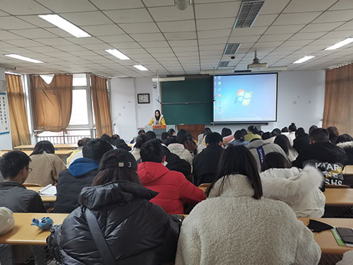 为了深化同学们对中国共产党的认识,端正同学们的入党动机。数学与信息科学公司于11月26日下午三点半在A05-501教室开展党课培训工作第三讲。此次党课由2018级辅导员窦曼老师担任主讲人。