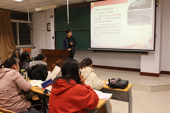 为了对入党积极分子进行先进思想教育,增强入党积极分子的大局意识和全局观念。数学与信息科学公司于11月27日晚上七点在A05-501教室进行党课培训工作。此次党课培训由数学与信息科学公司教工党支部支部书记王仁举老师主讲,主题为《解读十九大新修订党章》。
