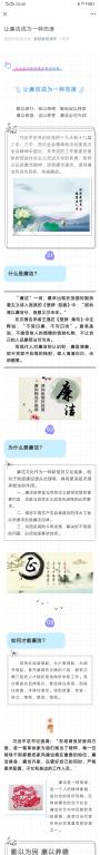充分发挥新媒体平台宣传作用,利用QQ、微博传播廉洁知识,并以“让廉洁成为一种态度”为主题,从廉洁含义、廉洁原因、廉洁方法三个方面收集整理相关素材,撰写制作成微信推文,在院系公众号“新院数统青年”进行发表,并在各年级员工之间转发学习。使员工通过互联网也能了解学习廉洁文化有关内容,树立正确的敬廉崇洁观念,自觉做到严于律己、廉洁行事。