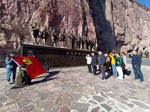 活动第一站到达“回龙精神”展览馆,观看了专题纪录片“当代愚公”。纪录片介绍了村党支部书记张荣锁同志带领党员干部群众战天斗地、劈山凿洞,为回龙村筑起一条“致富路”的艰辛历程,展示了“一个党员就是一面旗帜,一个支部就是一座堡垒”的深刻内涵。在“回龙精神”的红岩绝壁面前,beats365全体党员重温入党誓词,誓词铮铮见证党员坚定的初心和使命。宣誓后,全体学员一起徒步穿越挂壁公路,切实感受了回龙人民自力更生、艰苦奋斗给生活带来的翻天覆地的变化,更加深入地体会到共产党人团结带领人民群众砥砺奋进的丰硕成果。