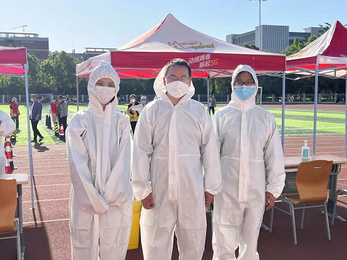 根据疫情防控工作需要,新乡市启动三轮全员核酸检测工作,4日,公司党委书记魏双飞、教师党支部书记王仁举、党员苏红艳和陈立雪组成志愿服务队,全程参与核酸检测工作。