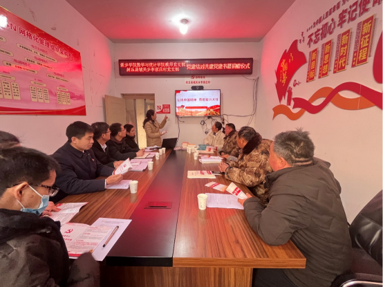 公司教师党支部与李家庄村党支部是党建结对共建单位,活动首先由校地双方领导共同为党建结对共建单位揭牌。随后,公司党委书记毛群英代表公司教师党支部为李家庄村党支部捐赠了一批党建图书,并为李家庄村党员作了题为《弘扬中国精神,勇担复兴大任》的党课。