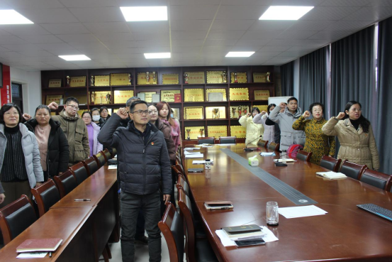 最后,公司党委毛群英带领全体与会党员进行入党宣誓。“我志愿加入中国共产党,......”。在铿锵有力的铮铮誓言中,与会党员的党性修养再次得到锤炼。