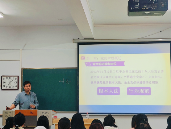 为持续加强对入党积极分子的教育和培养,4月11日,公司党委副书记、教师第一党支部书记王仁举在A03-315为公司第三十三期入党积极分子开展党课培训,培训主题为《中国共产党章程》(2022版)。学工办主任张泽潭、分团委书记陈立雪及51名入党积极分子参加此次培训。