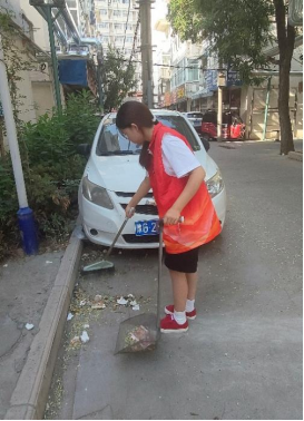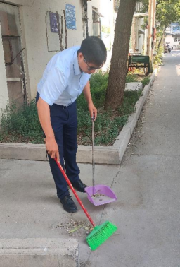在清扫活动中,志愿者们按照文明城市创建标准认真开展清扫工作。因新乡市近期雨量增多,地面树叶花瓣粘连路面且难以清扫。志愿者们利用笤帚、簸箕等有限的工具,不怕脏,不怕累,经过辛苦努力,终于使家属院的面貌焕然一新。