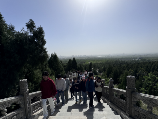 随后,同学们跟随讲解员,参观了唐公山造林基地、唐公山荒山绿化工程、金门沟造地工程等教学点,实地参观了吴金印带领当地群众人工开凿出的600多万个鱼鳞坑、800多万棵绿化林木,深刻体会吴书记“干一处响一处”的不易与艰辛,切身体会了唐庄镇在吴书记带领下的绿色发展史。