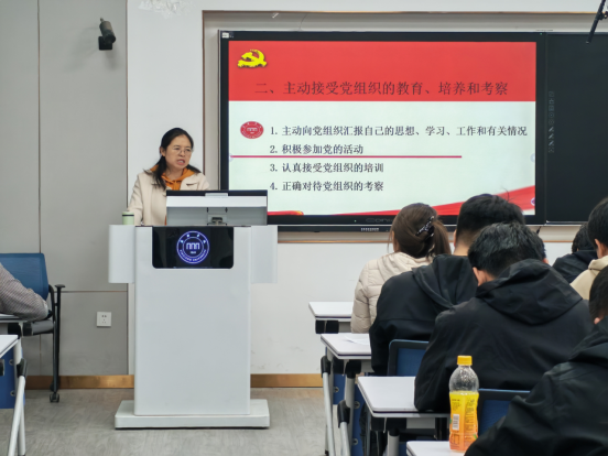 田文强鼓励同学们坚定理想信念,践行初心使命,教育同学们在网络空间中也要保持党员的良好形象。刘传虎带领大家重温了党的百年辉煌历程与基本经验,增强了同学们的党性观念和历史责任感和使命感。毛群英从端正入党动机,做好人生规划出发,引导同学们要做信仰坚定的新时代老员工。陈立雪围绕习近平新时代中国特色社会主义思想、党的二十大和二十届四中全会精神进行讲解,使同学们深刻理解了新时代党的指导思想和发展方向。张泽潭详细解读了《中国共产党章程》(2022年版),使同学们对党的组织原则、党员的义务和权利等有了更加清晰的认识。马晓雨围绕中国特色社会主义民族宗教理论知识,引导同学们正确认识和处理民族宗教问题。代雷详细讲解了加入中国共产党的条件、标准及入党程序,进行了党规党纪学习教育,为同学们今后的组织发展理清了思路。