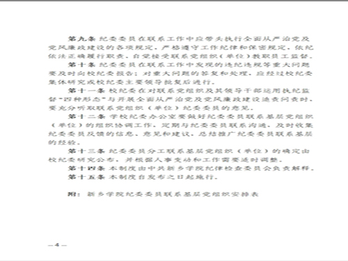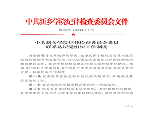 中共新乡纪律委员会委员联系基层党支部组织工作制度