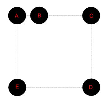 有人设计靶标如下,取1个边长为100mm的正方形,分别以四个顶点(对应为A、C、D、E)为圆心,12mm为半径作圆。以AC边上距离A点30mm处的B为圆心,12mm为半径作圆,如图2所示。