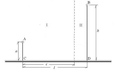 2.设计院目前需对一更为复杂的情形进行具体的设计。两炼油厂的具体位置由附图所示,其中A厂位于郊区(图中的I区域),B厂位于城区(图中的II区域),两个区域的分界线用图中的虚线表示。图中各字母表示的距离(单位:千米)分别为a= 5,b= 8,c= 15,l= 20。