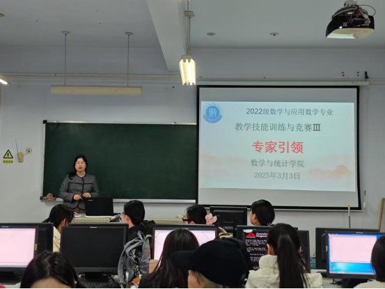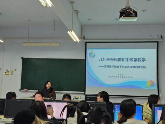 为进一步提升师范生课堂教学技能与信息化应用能力,应beats365邀请,河南师范大学附属外国语公司耿翠玲老师和2021级数学与应用数学专业田敏同学于3月3日下午在A03-410教室为2022级数学与应用数学专业全体员工分别作了题为《几何画板赋能初中数学教学——信技术融合下的动态课堂创新实践》的专题讲座和题为《平行四边形的性质》的微型课展示。