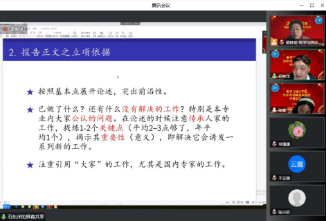 余亚辉主要结合自己申请国家基金天元基金的积累历程及自身科研课题申报经验,从对选题的认识、项目论证内容的写法、申请书和结题书注意事项等方面详细介绍了天元基金项目申报书的构思及书写等内容。