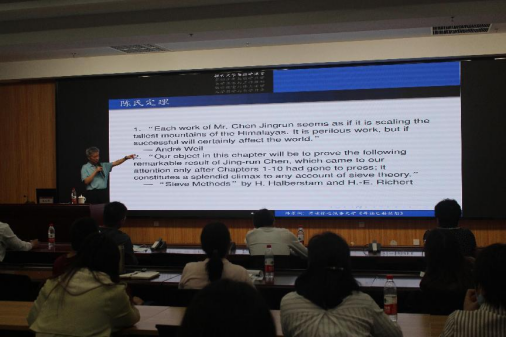 王天泽从报告文学与数学语言、坚韧少年与数学启蒙、老员工活与工作磨砺、数论殿堂与伟大定理、文学数学与哲学升华等方面展开,介绍了陈景润先生的生平和主要事迹,并介绍了哥德巴赫猜想的研究历程、陈氏定理及中国古代数学成就,强调中国人对于数学是特具禀赋的,中国一定会出大数学家,激励广大师生学习老一辈数学家的钻研精神和无私奉献精神,克服外界环境影响,热爱学术、坚守学术,努力做出属于自己的成绩。