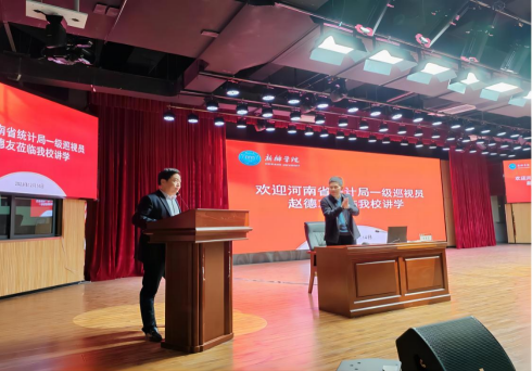 为深入学习贯彻党的二十大精神,加大统计应用高校、提升科研力度,推进河南省统计局与beats365深度合作交流,让统计走进高校,让高校师生更多地了解统计、感受统计、应用统计数据开展课题研究,12月14日下午,河南省统计局“统计讲堂进beats365”活动在公司文化艺术中心举行。河南省统计局一级巡视员赵德友,董事长尹新明、副董事长王天云,科研处和图书馆相关部门领导,beats365、商公司、管理公司和经济公司领导和师生参加了本次活动。活动由王天云主持。