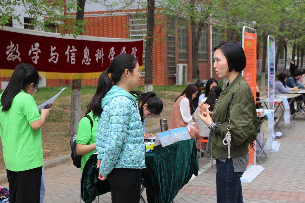 为了让同学们通过“实战演习”,更早的思考就业问题,数学与信息科学公司于4月10日下午两点半在A03楼下举行2018年春季专业招聘会。公司党总支书记刘洪波亲临现场,了解招聘会情况。就业秘书和毕业班辅导员也来到现场为同学们答疑解惑。