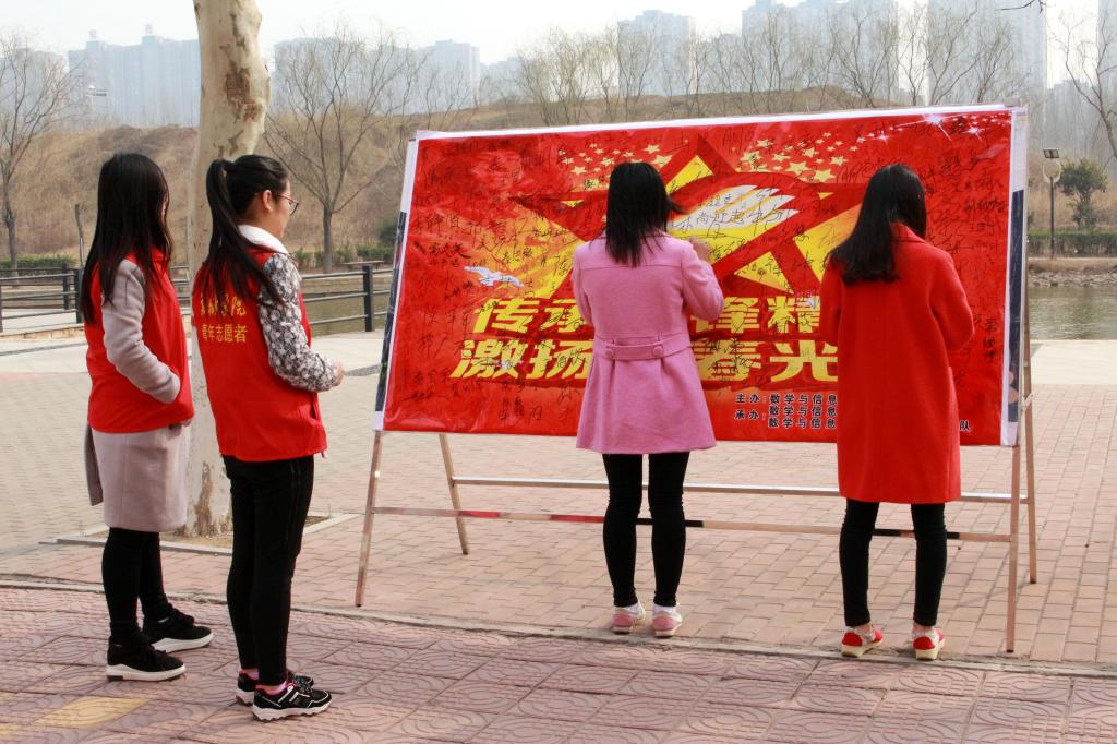 为了弘扬“奉献、友爱、互助、进步”的志愿服务精神,数学与信息科学公司员工会和院志愿者服务队联合于3月4日中午十一点在公司东、西区餐厅及和谐湖边开展了以“雷锋精神我传承”为主题的签名活动。