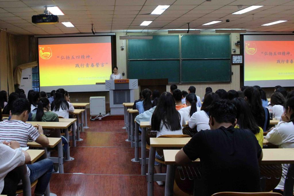 为了进一步弘扬五四爱国主义精神,充分发挥共青团组织的作用,数学与信息科学公司于5月5日晚七点在A05-105教室举行重温入团仪式活动。
