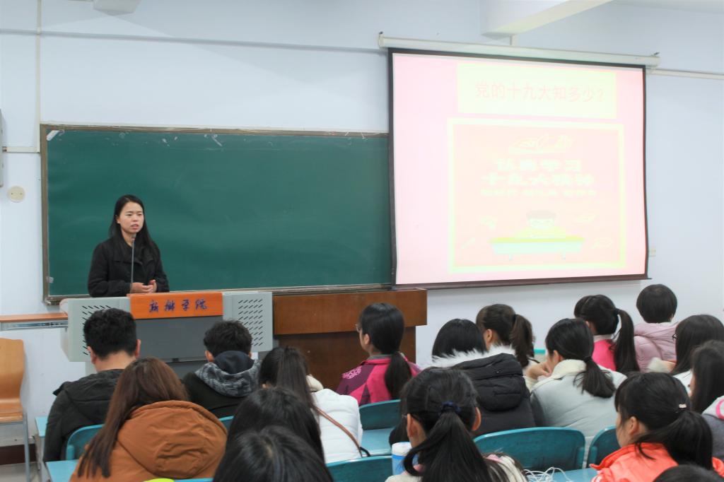 为了深入学习贯彻党的十九大精神,数学与信息科学公司于11月28日下午五点在A03—413教室举行“学习党的十九大精神”专题团课。此次团课由数学与信息科学公司团总支书记李峥老师主讲。