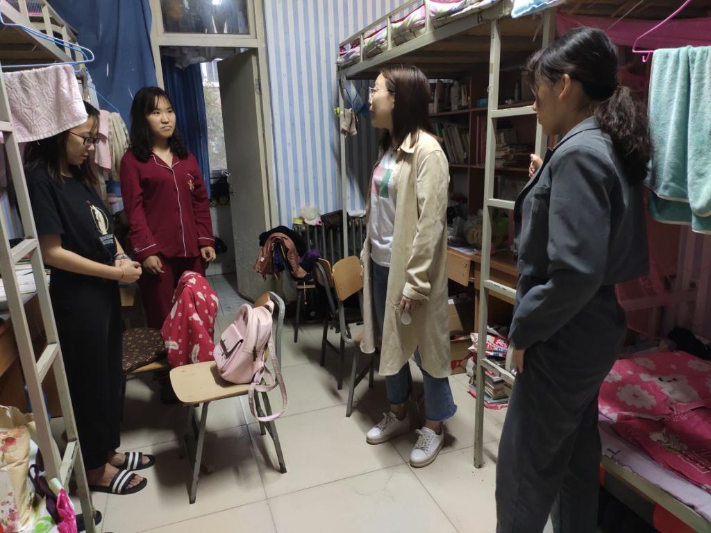 为了加强宿舍文化建设,帮助同学们养成良好的卫生和生活习惯, 2019年9月17日下午5:30,数学与信息科学公司党总支副书记毛群英、团总支书记李峥、2016级辅导员王琳莉、2017级辅导员马晨晖及2019级辅导员张如梦一同走访了员工宿舍,对宿舍内务卫生进行了检查。