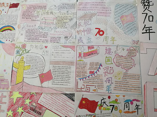 手抄报绘制活动主要分为召开主题班会、手抄报作品评选、展示优秀作品三个阶段。活动初期,院系召集各班同学开展庆祝新中国成立70周年庆主题班会。随后,员工会相关负责工作人员对手抄报进行了收集、整理、挑选工作,将优秀手抄报布置展出,供同学们观看欣赏。一张张浓缩了同学们爱国情的手抄报、一颗颗真挚的热爱祖国之心,展示出当代青年对祖国的无限热情。至此,此次手抄报绘制活动圆满结束。