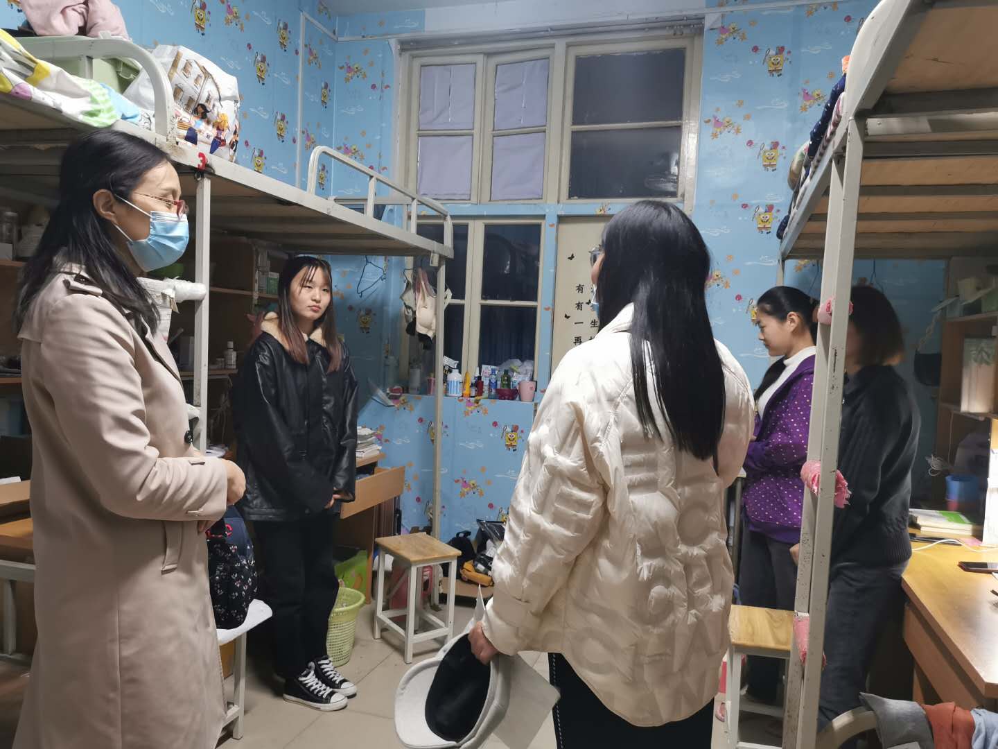 公司党委副书记王丽霞同志带领学工团队对宿舍的床铺整洁程度、地面卫生状况、物品摆放以及是否存在大功率电器等问题进行逐一检查,并向同学们反复强调宿舍安全用电问题,告诫同学们禁止使用大功率电器,外出时一定要关闭电源,将宿舍安全牢记心中。随后,他们又列举了一些诈骗实例,希望同学们提高自身安全意识,注意防范诈骗。每到一处,老师们都与员工进行了亲切的交谈,温馨提醒同学们天气渐寒,注意保暖。句句祝福、番番话语,温暖了同学们的心。