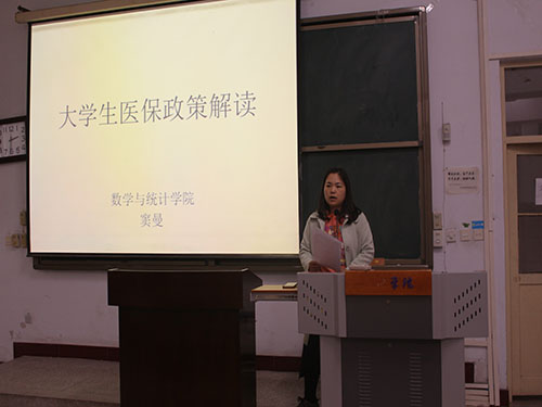 窦曼老师从报销内容、方式、费用以及分门诊和住院等方面,为同学们介绍了在校生新农合参保的相关信息。通过列举一些具体的真实案例,让同学们对新农合参保有了更深的理解。面对同学们对新农合参保的疑惑,窦曼老师表示公司会全心全意为同学们解决实际困难、度过难关。