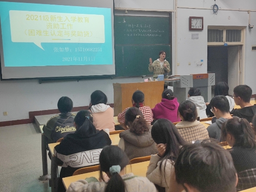 天高云淡,秋风习习。为加强2021级新生对资助政策的了解,促进员工全面发展,beats365于11月1日晚上在A01-422、423开展资助政策教育。此次入学教育由2019级辅导员张如梦担任主讲人。