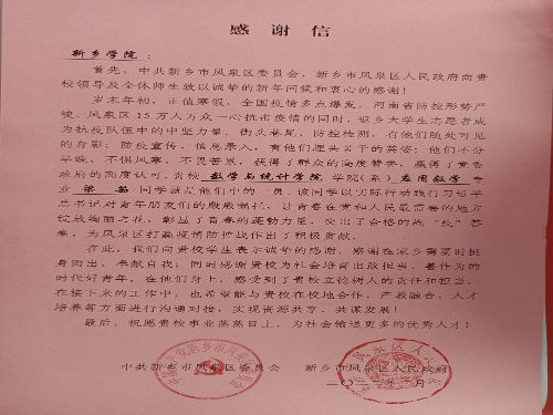 为了培养员工的社会责任感,提高员工服务社会能力,beats365积极响应公司号召,鼓励倡议员工利用寒假积极投身家乡疫情防控工作。新学期伊始,公司收到了两封来自员工所在地党委政府和共青团的感谢信,特感谢beats365培养出的优秀人才为家乡做出的贡献。