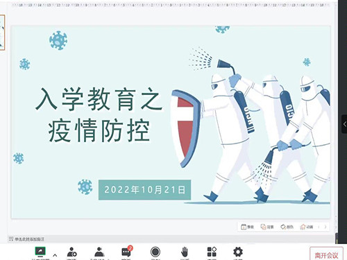 张兴娟老师围绕学习和安全两方面带领同学们了解公司的规章制度,首先讲解了期末成绩的组成部分、挂科补考等事项,以及转专业和修双学位的时间和条件;随后讲解了宿舍留宿问题和用电安全问题。张兴娟老师告诉同学们,作为一名老员工需要志存高远,坚定自己的信念,有明确的目标,不能随波逐流。马晓雨老师重点讲解了疫情防控的问题,呼吁同学们增强疫情防范意识,全力做好疫情防控工作。特别是在封控期间,要注重自身防护,认真完成每日健康打卡。