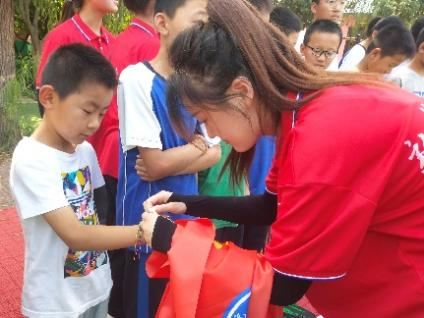 实践团成员在福利院老师的带领下与孩子们见了面。此时正值端午节,实践团成员们不仅给孩子们带来了学习用品与体育用品,还带来了粽子、有美好寓意的五彩绳等物品。