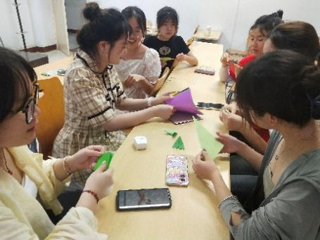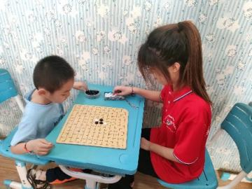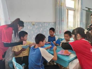 随后实践团成员开展各项活动,先后与小朋友下五子棋、做手工、辅导孩子们作业等。休息时间,实践团两名成员在前方进行领舞,其他成员带领孩子们一起学习了歌曲《小城夏天》中的一段舞蹈。在欢乐的歌声中,小朋友们跟随着音乐节奏一起舞动起来,虽然天气炎热,但小朋友们脸上都洋溢着幸福的笑容。