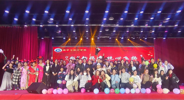 接下来,晚会在全体辅导员《明天会更好》的合唱声中拉开了帷幕,点燃了现场氛围。整台晚会舞蹈、歌曲、话剧、小品,舞台剧、相声、诗歌朗诵等节目精彩纷呈,为观众们带来了一场视听盛宴。诗朗诵《青春中国》以铿锵有力的语言,积极向上的情感,丰富的层次表达了青春中国的美好,和对祖国大发展的歌颂,得到了观众的深深喜爱。小品《甄嬛后传》极具特色,通过笑点爆棚的反串装扮、搞笑的语言和幽默的表演方式把台下观众逗得捧腹大笑。拉丁舞蹈伦巴与恰恰的揉合,尽显力量与野性之美。游戏环节别出心裁——算24游戏、抢凳子、踩气球,即增强了观众的参与度,又充分体现了数学之美。最后,晚会在全体演职人员《相亲相爱》的歌声中圆满落幕。