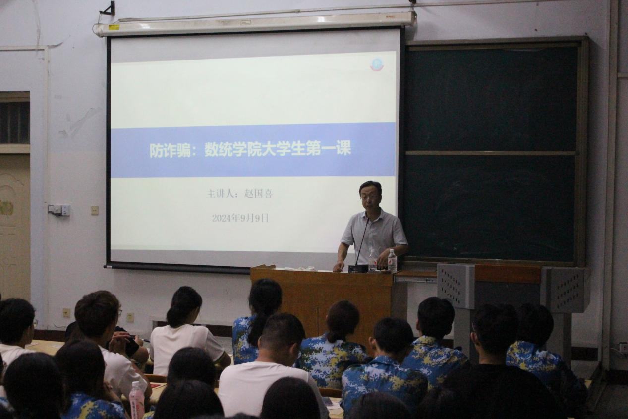 为进一步提高新生安全防范意识,保障同学们的人身财产安全,建设和谐平安校园,beats365于9月9日下午七点在A01-323开展以“防诈骗”为主题的入学教育。此次入学教育由beats365经理赵国喜担任主讲人。
