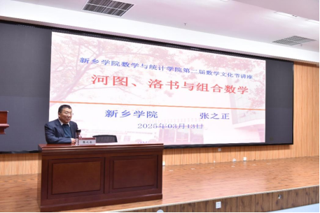 在开幕式结束后,员工表演了文化节开场秀,共同合唱歌曲《以数之名》。紧接着,beats365经理张之正教授以《河图洛书与组合数学》为题,从洛阳深厚的文化渊源(佛教首传地、道教起源地、儒学启蒙地、理学光大地、关公文化地、石刻艺术高峰地、人文荟萃地)以及起源于我国先秦文献记载的神话传说“河图”“洛书”讲起,讲述组合数学的起源,河图洛书的本源内涵、数学含义以及在当代数学中的地位,最后讲述我国古代数学家以及当代组合学家在组合数学上的一些杰出贡献等。讲座深入浅出的展现了古老华夏文明的璀璨智慧,使大家受益匪浅。当晚,文化节举行了数学达人争霸赛非数学类组决赛,该项赛事面向全校员工开放报名,经过初赛,有六支队伍成功入围首场决赛。最终,2024级应用统计学专业卢航歌、张立文、赵敬菀组成的队伍获得了本场比赛的冠军。