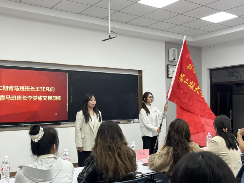 图7 青马分院两期班长做班旗交接